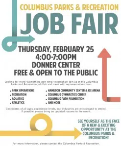 COLUMBUS, Ind. — Columbus Parks and Recreation will host a job fair from 4 to 7 p.m. today at Donner Center.