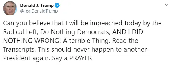WASHINGTON, D.C. – President Donald Trump was impeached by the U.S. House of Representatives on Wednesday night, making him the third President in American history to suffer that fate. Trump was impeached after being charged for abusing the power of his office by enlisting a foreign government to investigate a political rival ahead of the 2020 election, plus a second charge of obstructing Congress in its investigation.