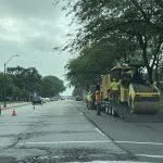 Crews are scheduled to finish repaving around 5 p.m. although the construction is expected to be delayed by severe weather.