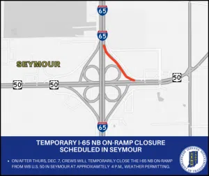 Temporary I-65 on-ramp closure scheduled in Seymour