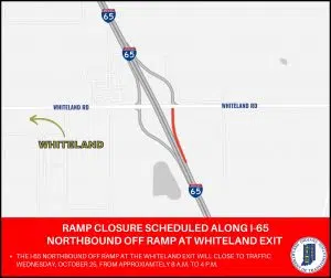 I-65 northbound off ramp to close at Whiteland Wednesday