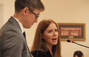 Tax Foundation senior policy analysts Andrey Yushkov and Katherine Loughead answer lawmaker questions on Friday, Oct. 20, 2023. Photo - Leslie Bonilla Muñiz/Indiana Capital Chronicle