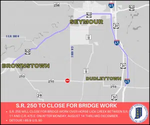 JACKSON COUNTY, Ind.- Indiana Department of Transportation (INDOT) contractor Dave O'Mara Contractor Inc. plans to begin work in mid-August to replace the State Road 250 bridge over Horse Lick Creek i...